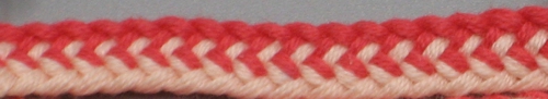 A Broad Lace onnistuu myös kaksivärisillä pohjukoilla, vaikka sellaista mallia ei keskiaikaisista käsikirjoituksista löydykään.