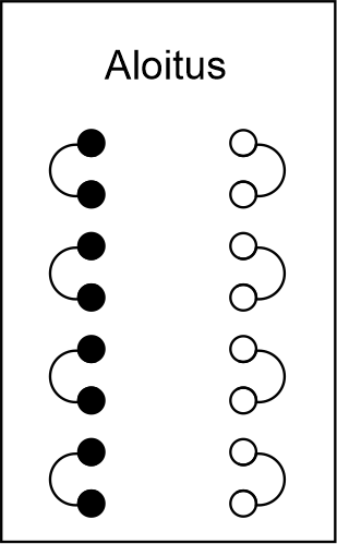 Vinkki: Jos kahden pohjukan taiteilu samalla sormella ei ota onnistuakseen, Ingrid Crickmore on kehittänyt toisen tavan tehdä näitä kahta nauhaa. Siinä käytetään apuna oikeaa peukaloa, minkä ansiosta samalla sormella ei koskaan ole kahta pohjukkaa. Varsinkin jos olet selvittänyt Merisalon yhdeksän pohjukan nauhan (nauha 174), Ingridin tapa voi tuntua paljon helpommalta. Löydät sen Loop Braiderin sivustolta, https://loopbraider.com/2011/10/24/lace-dawns/ (sisältää videon, englannintaito ei ole välttämättömyys).