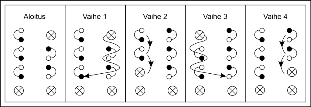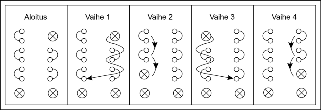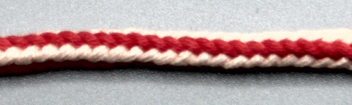 Tämä nyöri tehdään täsmälleen samoin kuin edelliset, mutta tässä käytetään kahta väriä pohjukoita, kolme yhtä väriä ja kaksi toista.