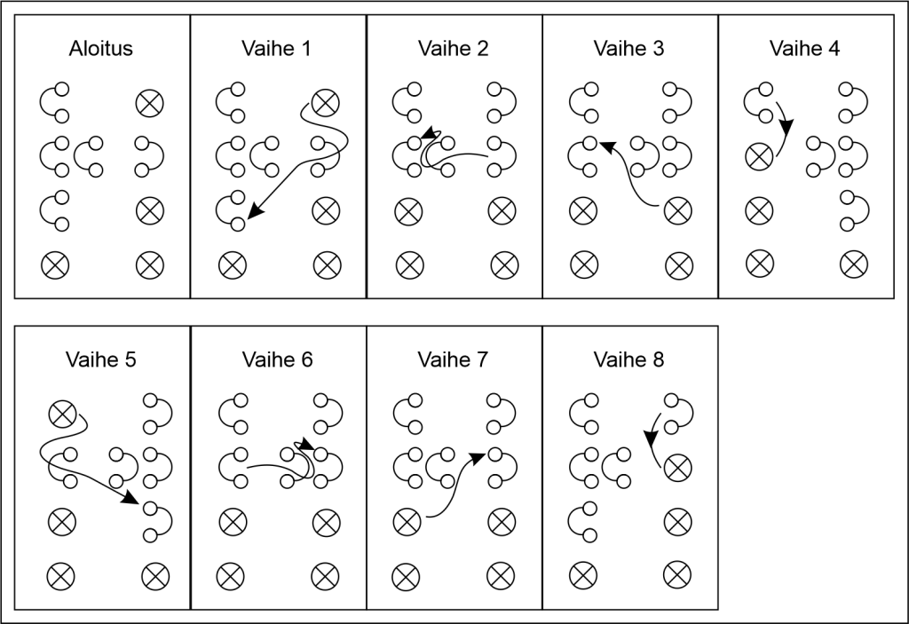 Huom! Poiminnat eivät ole täysin peilikuvia. Vaiheessa yksi poimitaan pohjukka kierrettynä, kun taas vaiheessa viisi pohjukka poimitaan avoimena. Myös kaikki muut poiminnat tehdään avoimina, vain ensimmäinen on kierretty. Tämä on hyvin tärkeää muistaa, muuten nauha ei onnistu halutulla tavalla.