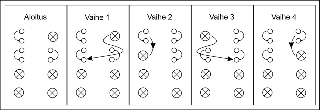 Tämän nyörin ohjeen löysin Susanna Broomén vihkosesta “Vikingatida klädedräkt. Snoddar och flätor” (2017). Nyöri on läheistä sukua Merisalon nauhalle 166 sekä nauhalle A Round Lace of 5 Loops, vaikka molemmat ovat ihan eri vuosisadoilta (Birka oli voimissaan viikinkiajalla reilu tuhat vuotta sitten).