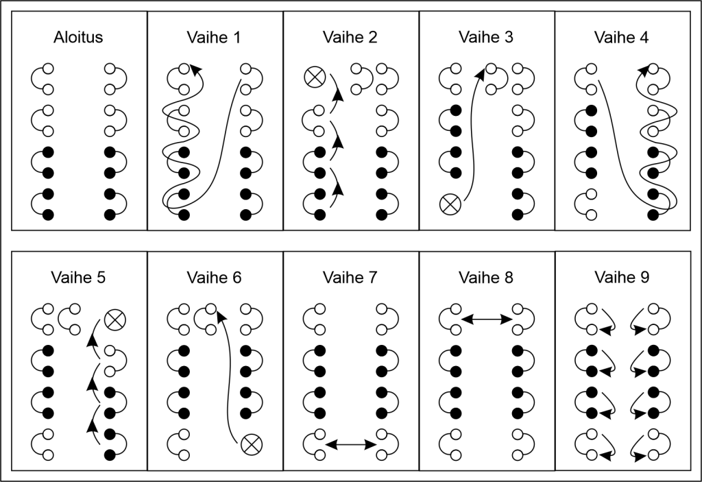 Tämä nauha voi ensin tuntua vähän haasteelliselta. Ensinnäkin pitää taiteilla kahta pohjukkaa samalla sormella. Näissä tilanteissa kannattaa siirtää kädenpuoleinen pohjukka sormen sisemmälle nivelelle ja ottaa toinen pohjukka ulompaan niveltaipeeseen. Toisekseenkin lopuksi pitää kiertää kaikkia pohjukoita paikallaan puoli kierrosta alaspäin (pikkurillin suuntaan). Sen tekeminen muita pohjukoita pudottamatta vaatii vähän harjoitusta. Mutta kun nauhan periaatteet oppii hallitsemaan, poimintakuvio on aika helppo muistaa.