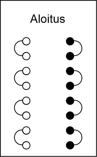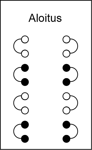 Pohjukat voi kiertää joko toisen käden sormien avulla tai sitten saman käden peukalon avulla. Jälkimmäinen tapa vaatii vähän harjoitusta varsinkin pikkurillien osalta, mutta nopeuttaa näiden sidottujen nauhojen tekemistä huomattavasti. Alla olevalla videolla kierrän pohjukoita ensin toisen käden sormien avulla, sitten molemmat kädet yhtä aikaa (joskin vähän jouduin auttamaan oikeaa pikkurilliä).