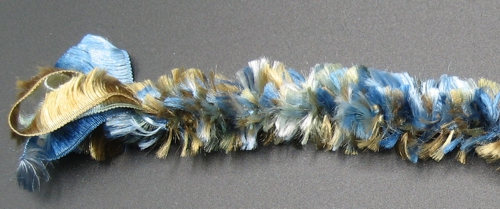 A Broad Lace of 5 Loops näyttää päältä vähän siltä, kuin se olisi palmikoitu. Jos malliin laittaa yhden erivärisen langan, se näyttää pohjukan reitin nauhassa ja näyttää edelleen palmikoidulta. Mutta kun nauhan kääntää ympäri, onkin se kuin neulepintaa.