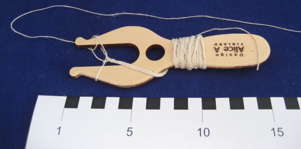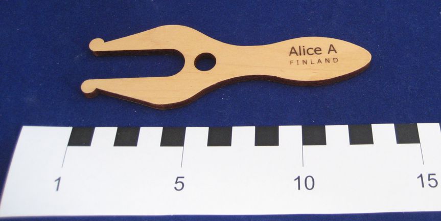 Alice A is a Finnish company that makes among others lucets and cording discs, probably with laser cutting. You can buy these lucets at fairs and for example from Lankava. I know the makers put effort into design, but I don’t terribly like this model. It is also matter of technique if like the horns with a bump.