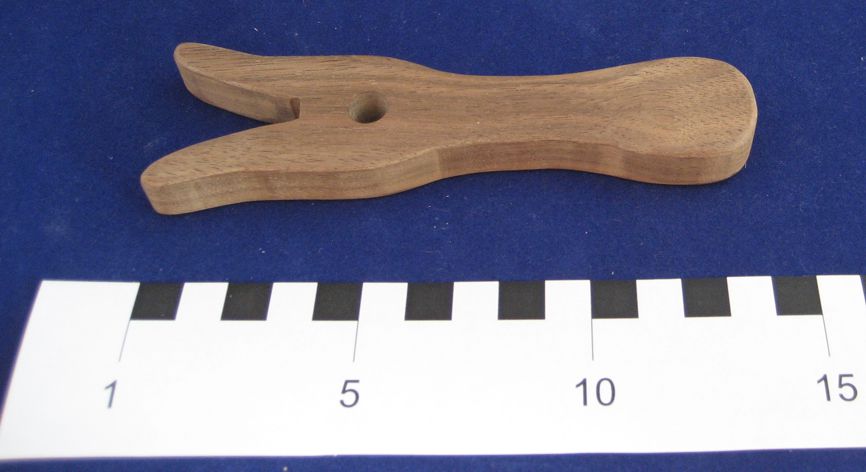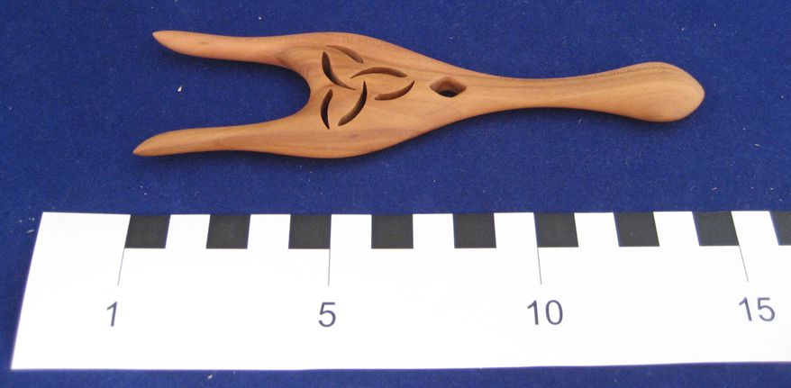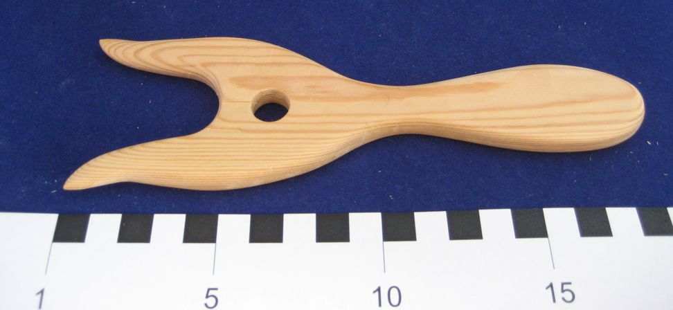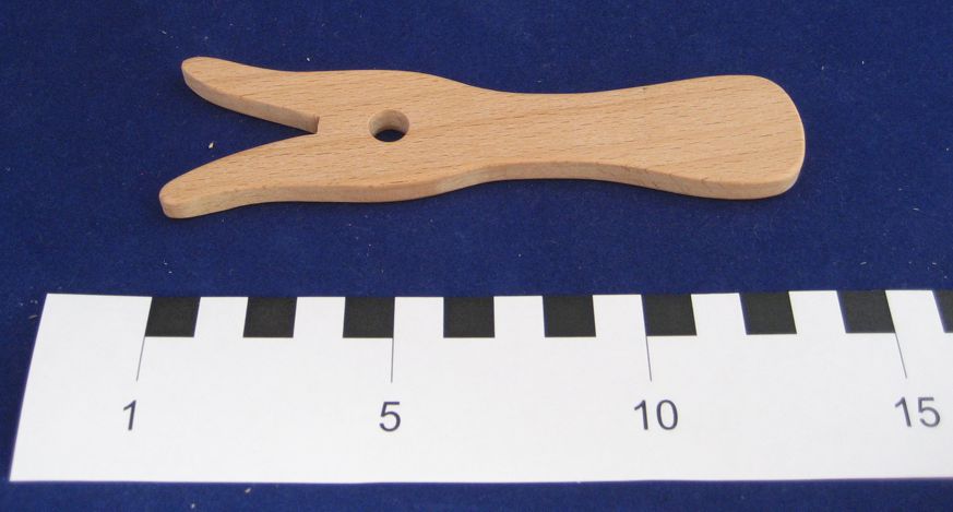 The “lyre” is a traditional shape for a handleless lucet. This exhibit is well finished and fits nicely in my hand.