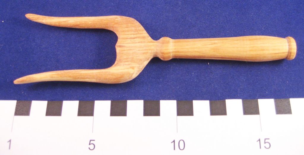 Tämän pieni haarukka on hyvän muotoinen ja hyvin viimeistelty, mutta ehkä vähän kapea. Se on tehnyt PinkeyCraftAndMore, joka näyttää siirtyneen kokonaan tilaustöihin. Aina voi tietenkin kysyä…