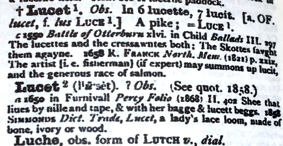 Ziggy Rytka löysi Oxford English Dictionarysta kaksi eri merkitystä sanalle lucet. Toinen on “hauenpoikanen”, sanakirjan mukaan merkitys on vanhentunut.